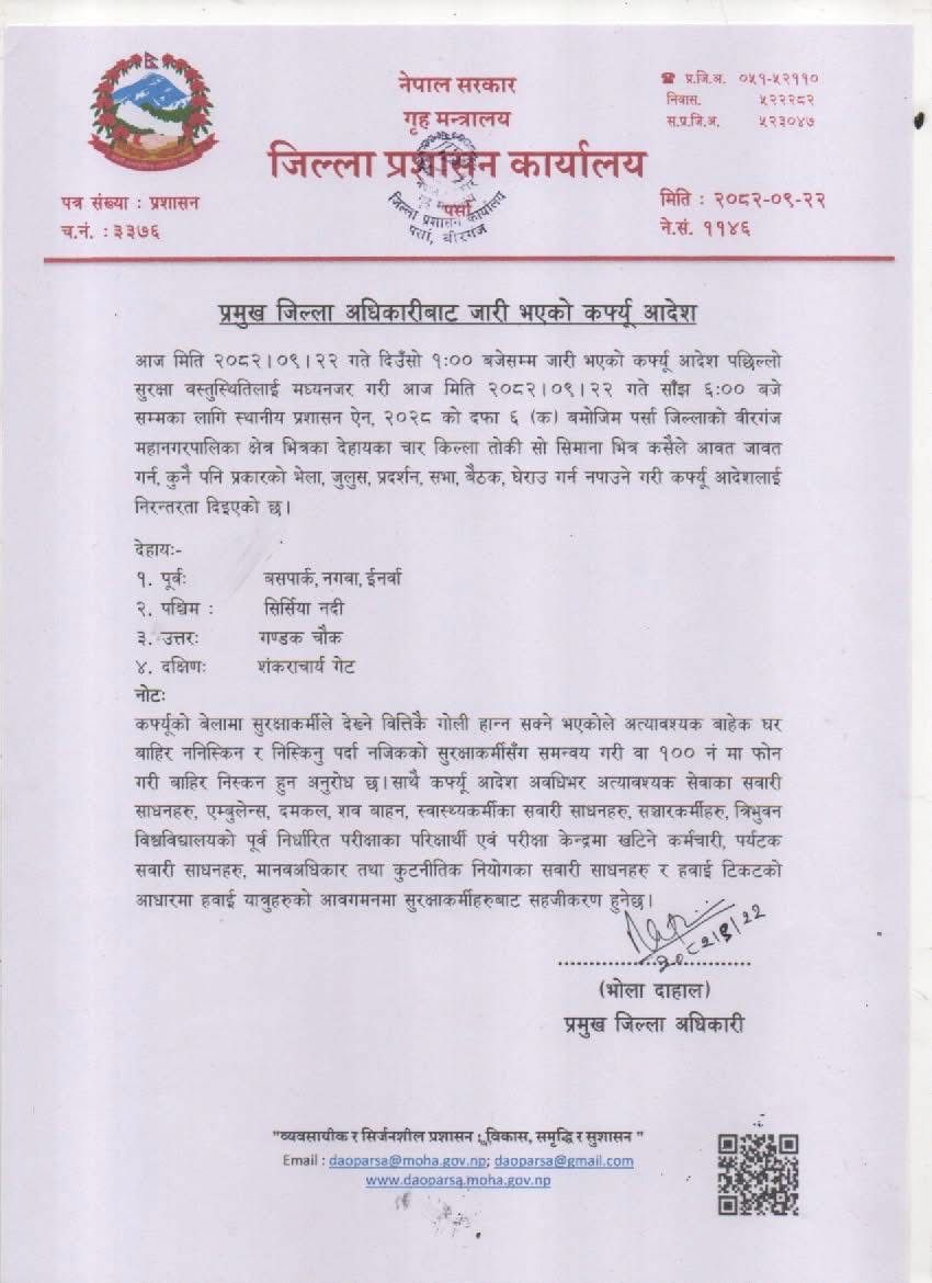 वीरगञ्जमा फेरि लम्बियो कर्फ्यू