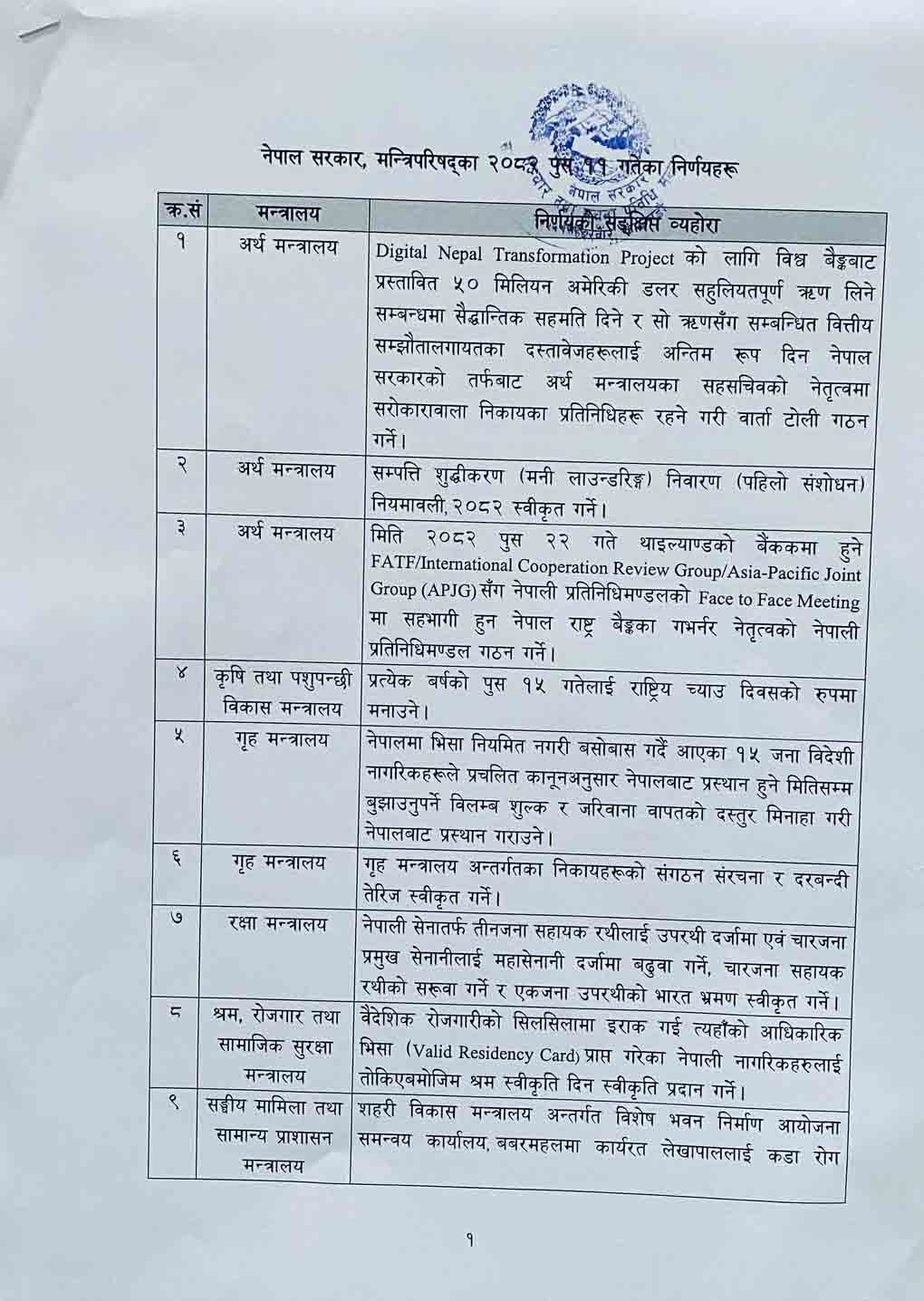 यी हुन् मन्त्रिपरिषदका बैठकका ३५ निर्णय (सूचीसहित)
