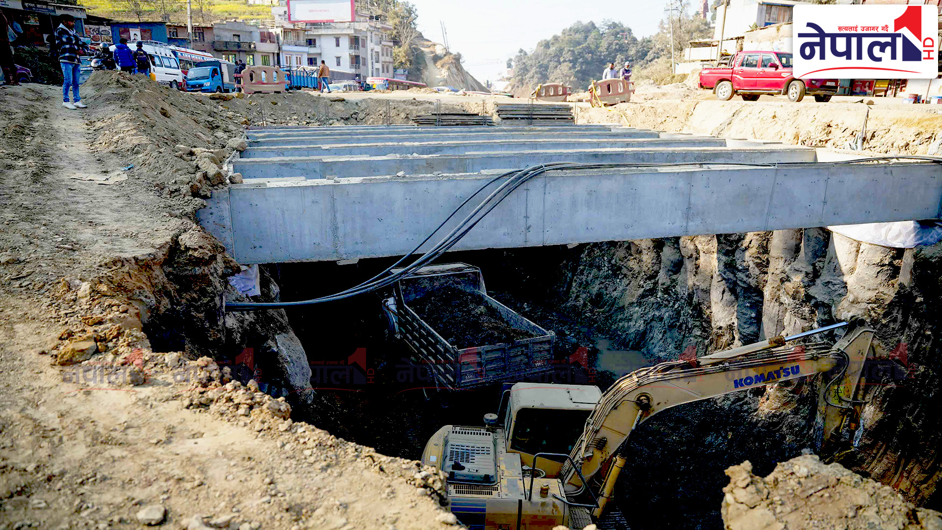 काठमाडौं । भक्तपुर र काभ्रेपलाञ्चोकको सीमा क्षेत्र साँगामा दुई लेनको अण्डरपास निर्माण कार्य तीव्र गतिमा अघि बढिरहेको छ । अरनिको राजमार्ग अन्तर्गत सूर्यविनायक–धुलिखेल सडक विस्तार आयोजनाले निर्माण गरिरहेको अण्डरपासको कुल लम्बाइ १ हजार ११० मिटर रहेको छ । अण्डरपासमा बनेपातर्फ १९० मिटर र भक्तपुरतर्फ ९०० मिटर एप्रोच सडक समावेश गरिएको छ । यसको उचाइ ६ मिटर र चौडाइ १०.५ मिटर रहनेछ । साथै अण्डरपासभित्रै २० मिटरको पुल पनि निर्माण गरिने सब–इन्जिनियर ज्ञानमान श्रेष्ठले जानकारी दिए ।