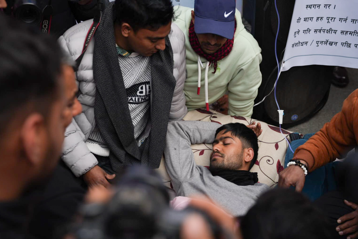 अनसनरत अजय सोडारीलाई भेट्न माइतीघर मण्डला पुगे दुर्गा प्रसाई
