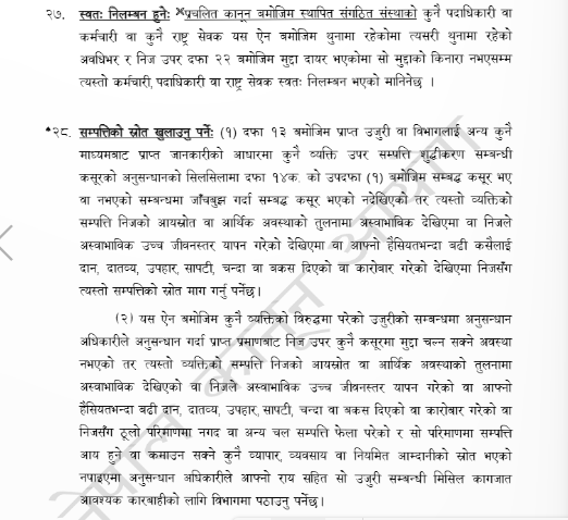 उनका अनुसार सम्पत्ति शुद्धीकरण ऐनको दफा, २७ मा सम्पत्ति शुद्धीकरणको आरोप लागेको वा मुद्दा खेपिरहेको सार्वजनिक पदमा बसेको मान्छेको पद स्वत: निलम्बनमा रहन्छ।