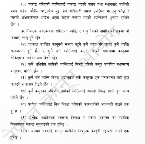 ‘नेपालको संविधानको धारा २० को उपधारा ५ मा कसुरदार प्रमाणित नभएसम्म दोषी नमान्ने भन्ने व्यवस्था गरिएको छ- यो आम नागरिकको मौलिक हक हो’ उनले नेपालवान एचडीलाई भने।