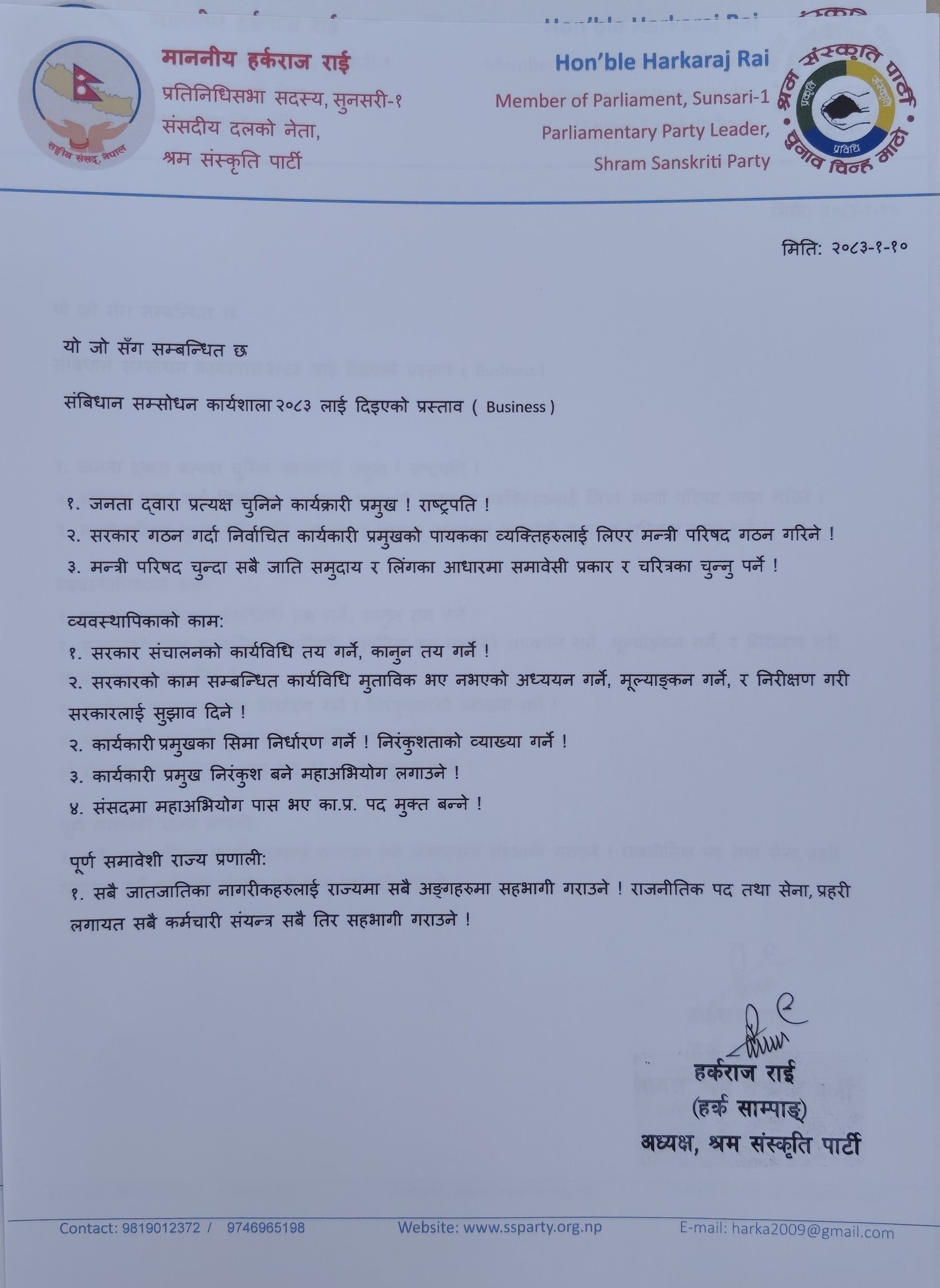 हर्कको प्रस्तावमा प्रधानमन्त्री गायब ! राष्ट्रपति प्रत्यक्ष जननिर्वाचित