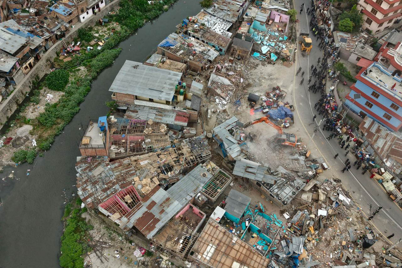 काठमाडौं। काठमाडौं तीनकुने गैरीगाउँ क्षेत्रको सुकुम्बासी बस्तीमा पनि डोजर चलेको छ।