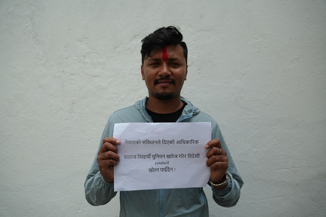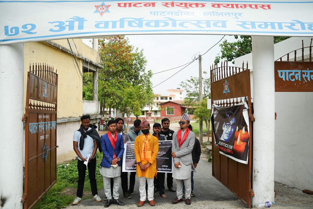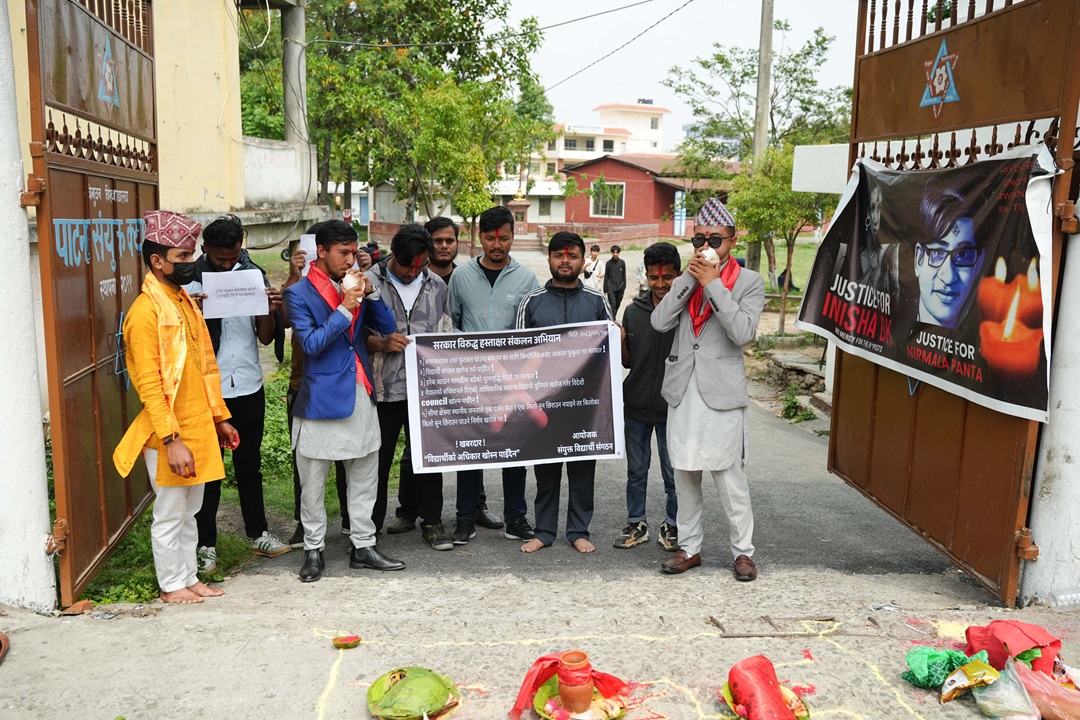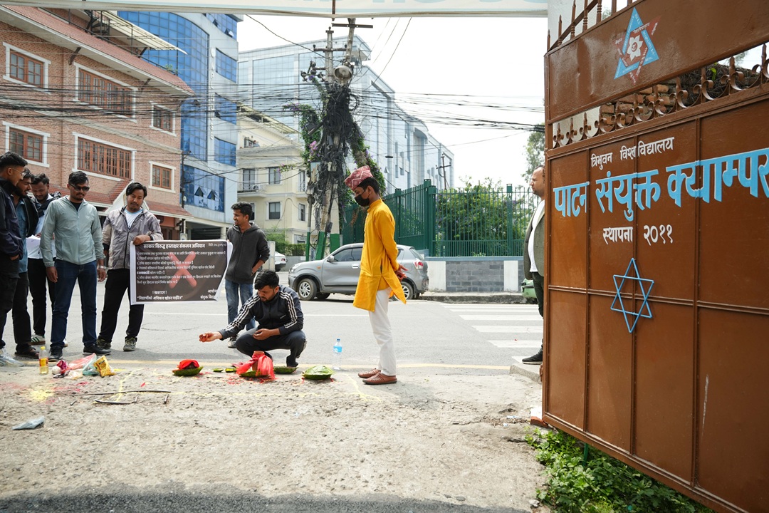 काठमाडौं । सयुक्त विद्यार्थी सङ्गठनले साेमबार पाटन संयुक्त क्याम्पसमा शङ्खघोष र शान्ति स्वस्तिवाचन गरी विद्यार्थी संगठन खारेजीको विरुद्धमा प्रदर्शन गरेका छन्।