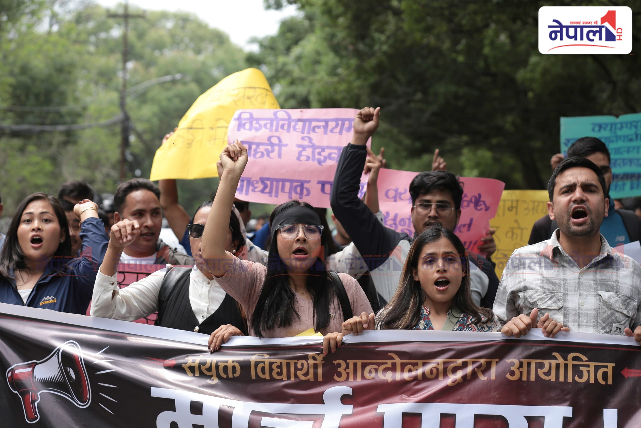 संयुक्त विद्यार्थी आन्दोलनले त्रिभुवन विश्वविद्यालय परिसरमा गर्यो मार्चपास(तस्बिरहरु)