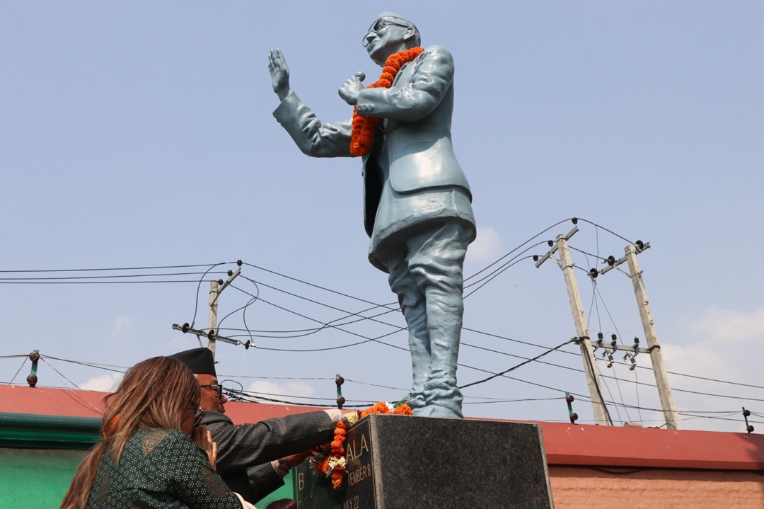 कांग्रेस संसदीय दलका नेता भीष्मराज आङ्देम्बेद्वारा बीपीसहित अग्रणी नेताहरूकाे शालिकमा माल्यार्पण