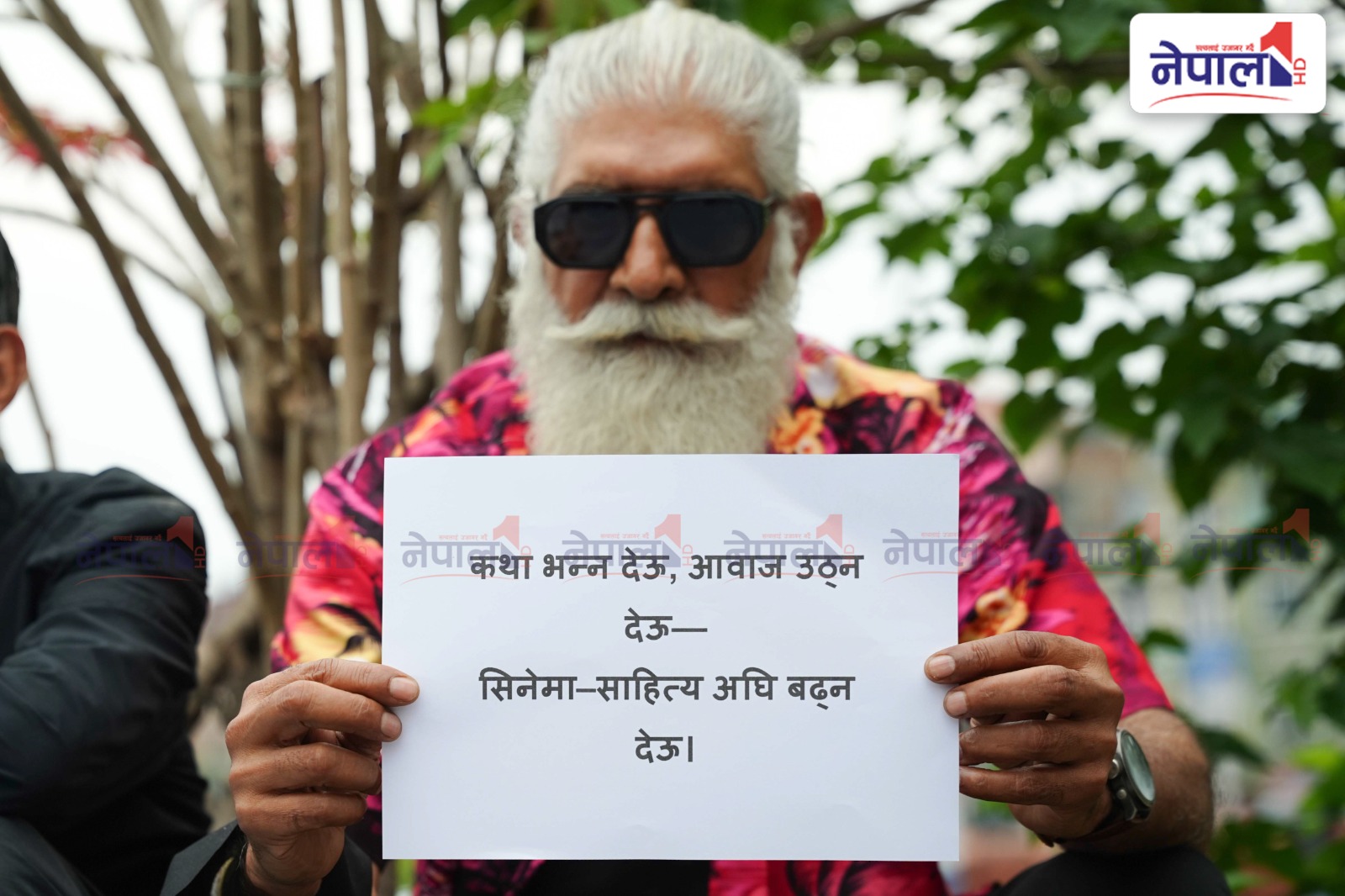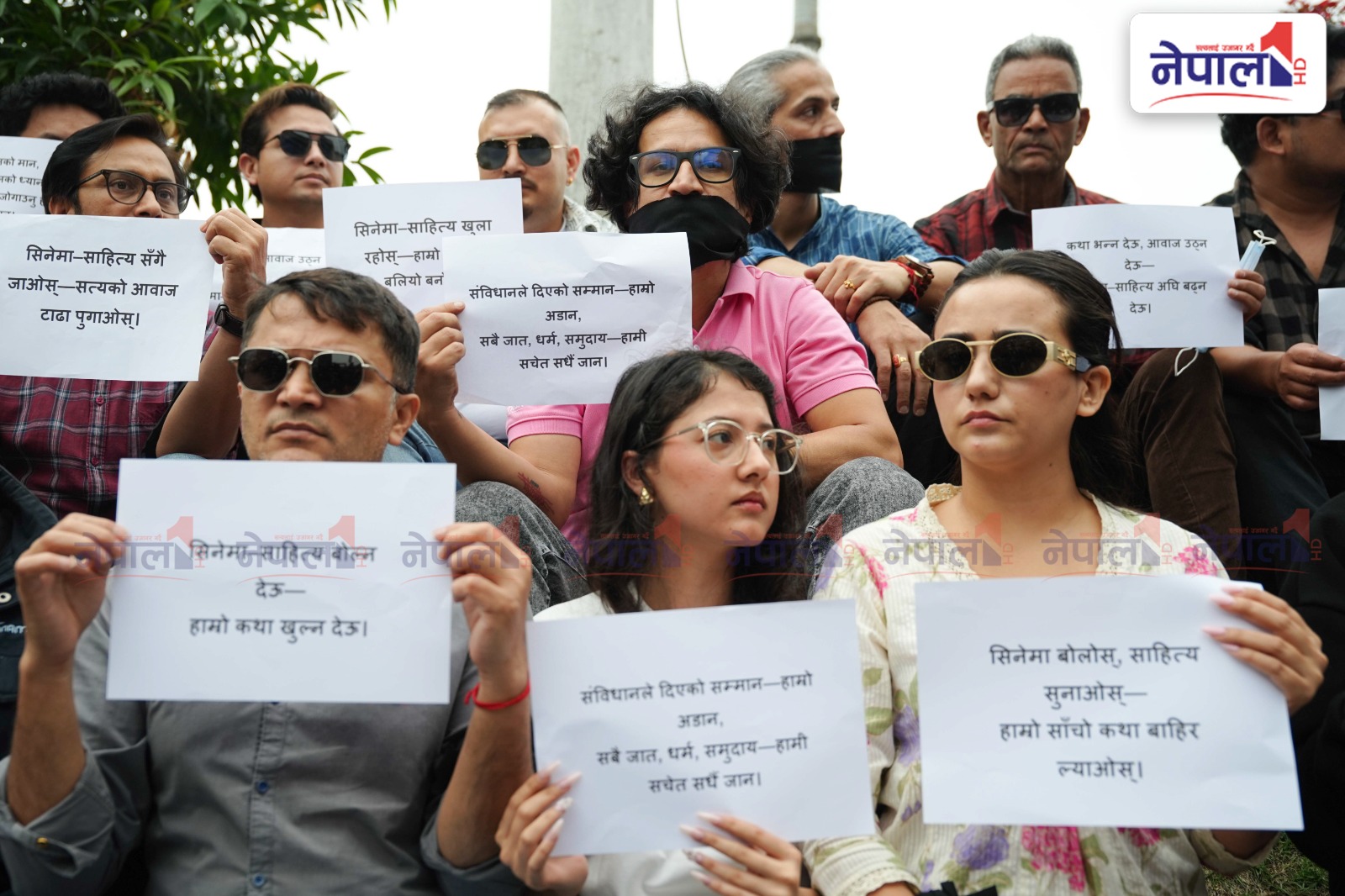 काठमाडौं । कला, फिल्म तथा साहित्य क्षेत्रमा अभिव्यक्ति स्वतन्त्रता संरक्षणको माग राख्दै कलाकार तथा सिर्जनशील समुदायले आज शान्तिपूर्ण विरोध कार्यक्रम सम्पन्न गरेका छन्।