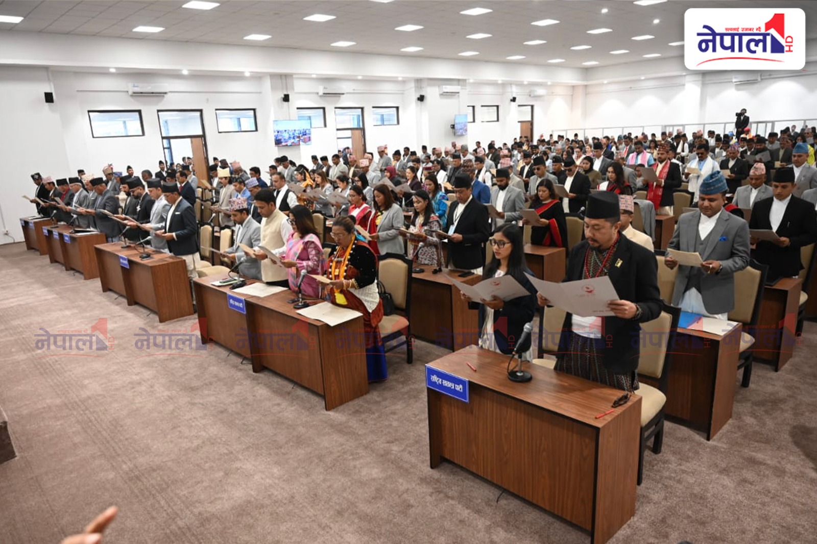 शपथ ग्रहण समारोहमा परम्परागत धार्मिक विधिअनुसार सातवटा शंखबाट शंखनाद, १०८ बटुकबाट स्वस्ति वाचन तथा बौद्ध भिक्षुहरूद्वारा अष्टमंगल पाठ गरिने कार्यक्रम तय गरिएको छ ।