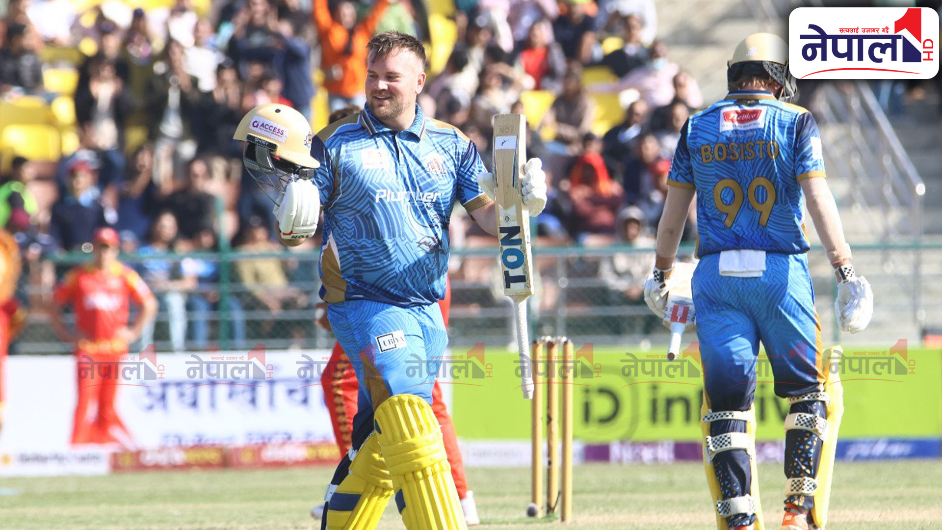 जोन ४१ रनमा आउट हुँदा जेरार्ड ४३ रनमा अविजित रहे । वेन चाल्र्सवर्थ ३४, मिलिन्द कुमार १५, आकाश त्रिपाठी ८ र रसिद खान ० रनमा आउट भए । बलिङमा कर्णालीका नन्दन यादवले ३ र पवन सर्राफले एक विकेट लिए ।