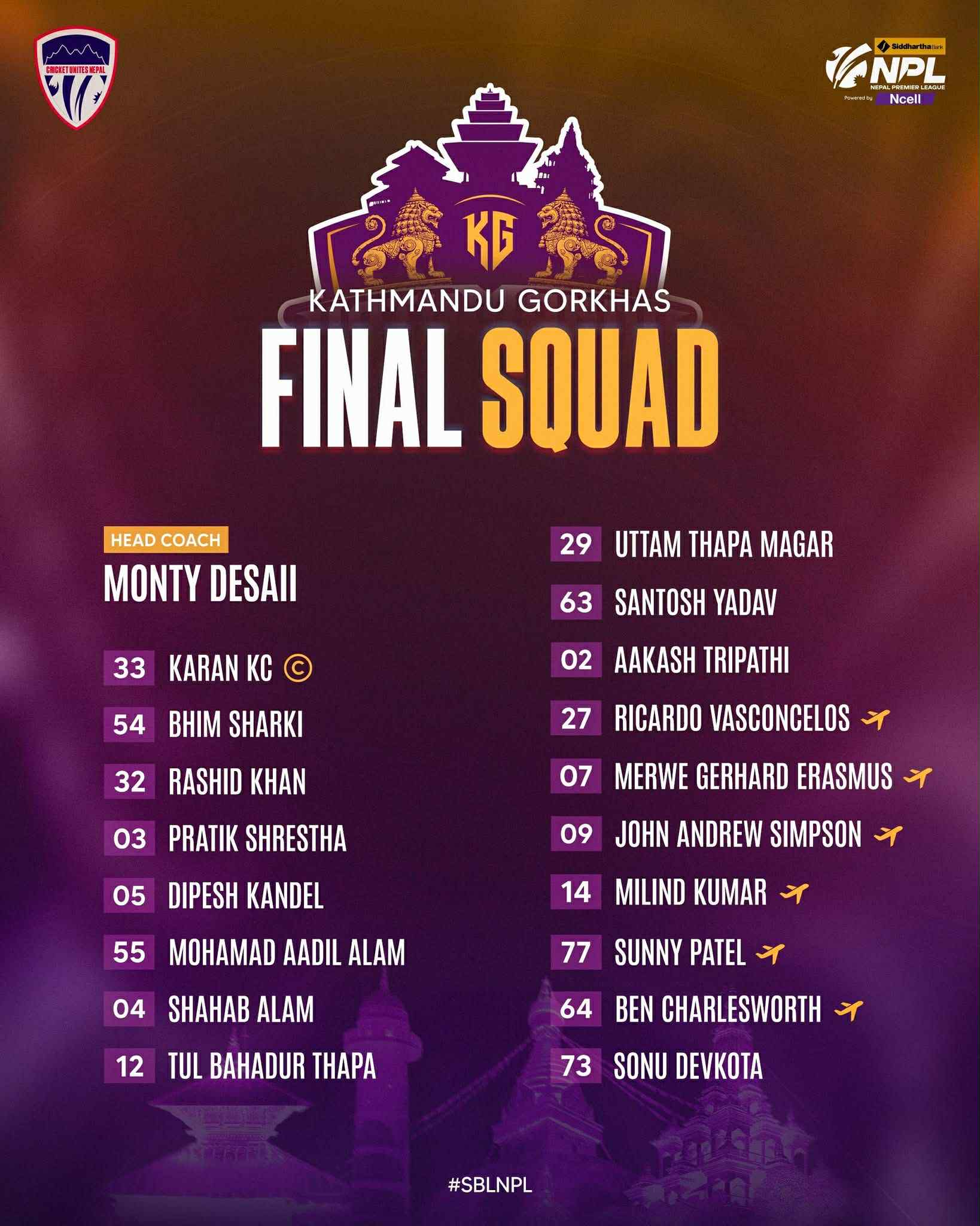 यसबाहेक, सञ्जय कृष्णमुर्ती (अमेरिका) र निकोल लोफ्टी इटोन (नामिबिया) हालसम्म जनकपुरबाट खेल्ने निश्चित भएका अन्य दुई नाम हुन् । यसअघि न्युजिल्यान्डका चर्चित अलराउन्डर जिम्मी निसमको साथ पाएको जनकपुरमा यसपटक भने उनको उपस्थिति रहने छैन त्यसैगरी काठमाडौंले भारतका मोन्टी देसाईलाई मुख्य प्रशिक्षकको भूमिकामा नियुक्त गरेको छ । मोन्टी नेपाली राष्ट्रिय क्रिकेट टोलीका पूर्व मुख्य प्रशिक्षक समेत हुन् । आसन्न एनपिएलमा काठमाडौं विदेशी खेलाडीको कोटा पूरा गर्ने पहिलो टोली हो । टोलीले पहिलो विदेशी खेलाडीका रूपमा दक्षिण अफ्रिकाका विकेटकिपर ब्याटर रिकार्डो भास्कोनेसेलोसलाई अनुबन्ध गरेको थियो ।