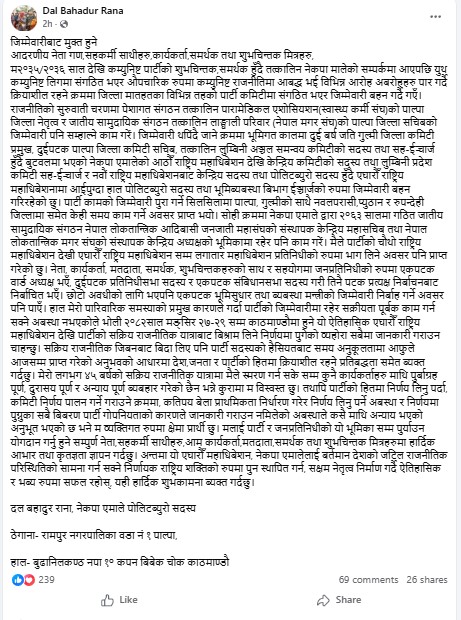 उनका अनुसार सार्वजनिक लेखा समितिको उपसमितिको विवादास्पद निष्कर्ष राजनीतिक उद्देश्यले प्रेरित थियो, जसलाई मुख्य समितिले पूर्ण रूपमा स्वीकार नगरी केवल ‘आवश्यक छानबिन’ गर्न निर्देशन दिएको थियो ।