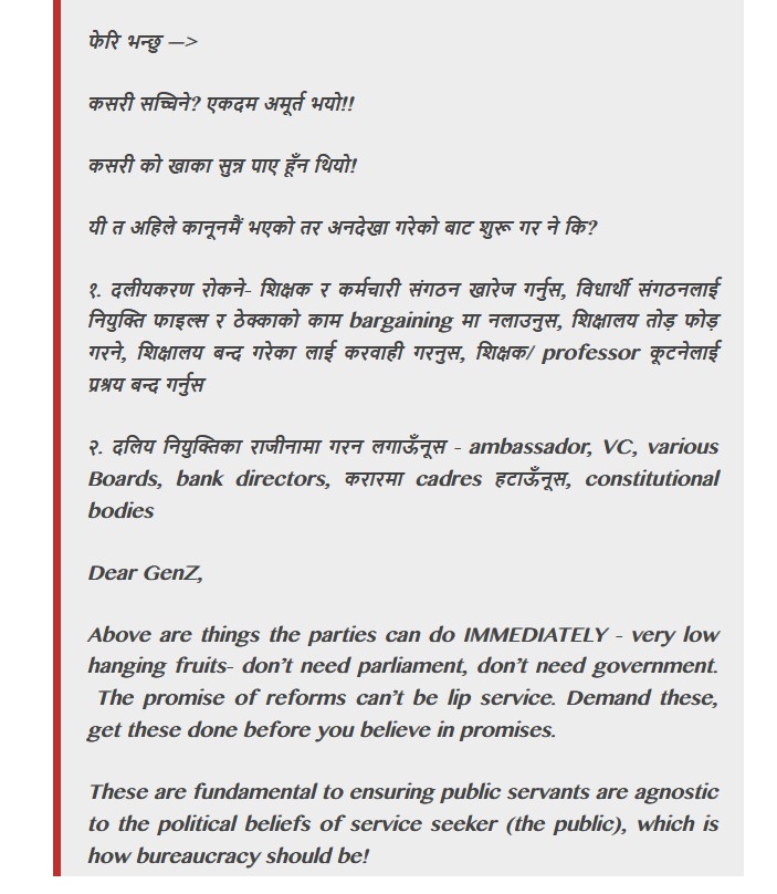 बाँकी ४ हजार ८सय ५७ फरार कैदीको खोजीका लागि विशेष अपरेशन प्रक्रिया जारी रहेको पनि बताए । उनले जेन–जी आन्दोलनको क्रममा अपराधिक घटनामा संलग्न ५ सय ९५ जनालाई पक्राउ गरिएकोमा २ सय ८३ जनाविरुद्ध मुद्दा दर्ता भइसकेको पनि बताए । उनले आगामी आम निर्वाचनमा सुरक्षाका लागि सेना परिचालनसम्बन्धी प्रस्ताव राष्ट्रिय सुरक्षा परिषद्बाट पारित भइसकेको जानकारी समेत गराए । उनले सातै प्रदेशमा निर्वाचनलक्षित प्रदेशस्तरीय सुरक्षा गोष्ठी सञ्चालन हुँदै आएको पनि बताए । सुरक्षा निकायहरुको सुदृढीकरणका लागि आवश्यक उपकरण र सवारी साधन किन्न स्रोत सुनिश्चित गरिएको बताउँदै उनले नेपाल प्रहरीका लागि २ सय ६२ सवारी, सशस्त्र प्रहरीका लागि १ सय ९९ र राष्ट्रिय अनुसन्धान विभागका लागि ६ सवारी खरिद प्रक्रिया अगाडि बढाइएको स्पष्ट पारे ।