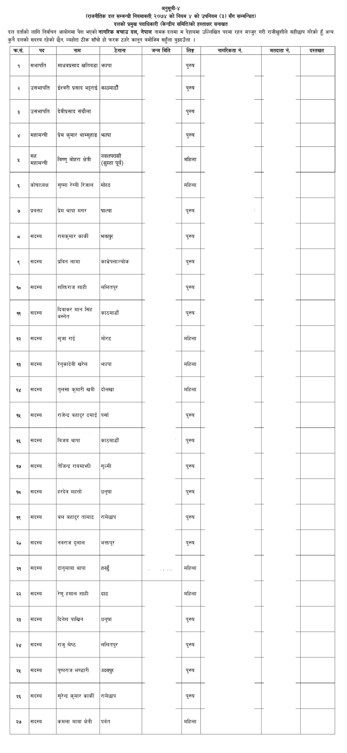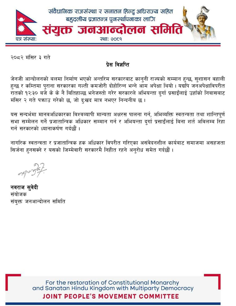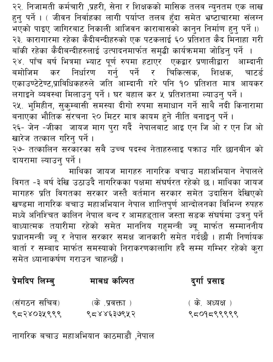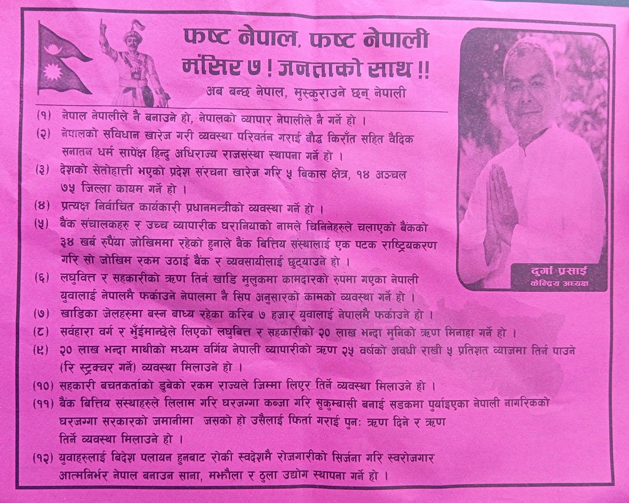 दुर्गा प्रसाईं अध्यक्ष, राष्ट्रियता धर्म संरक्षण र नागरिक बचाउ महाअभियान सभापति,