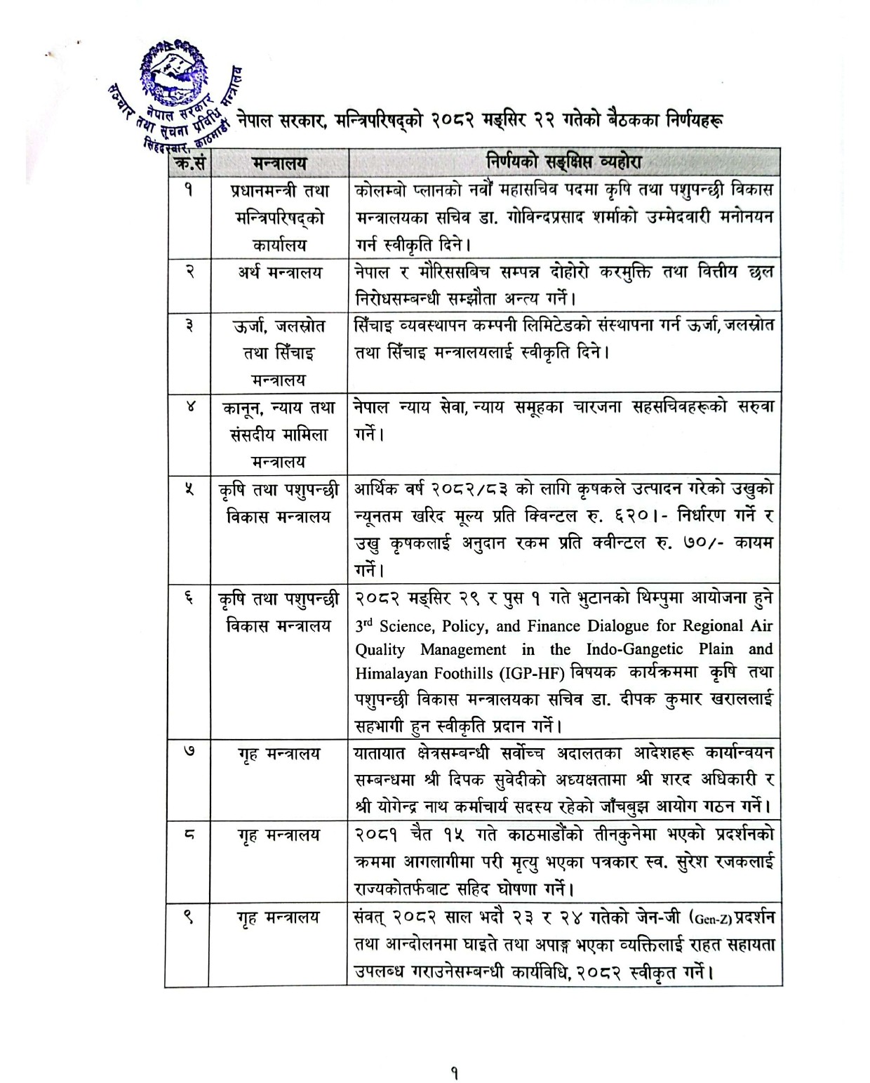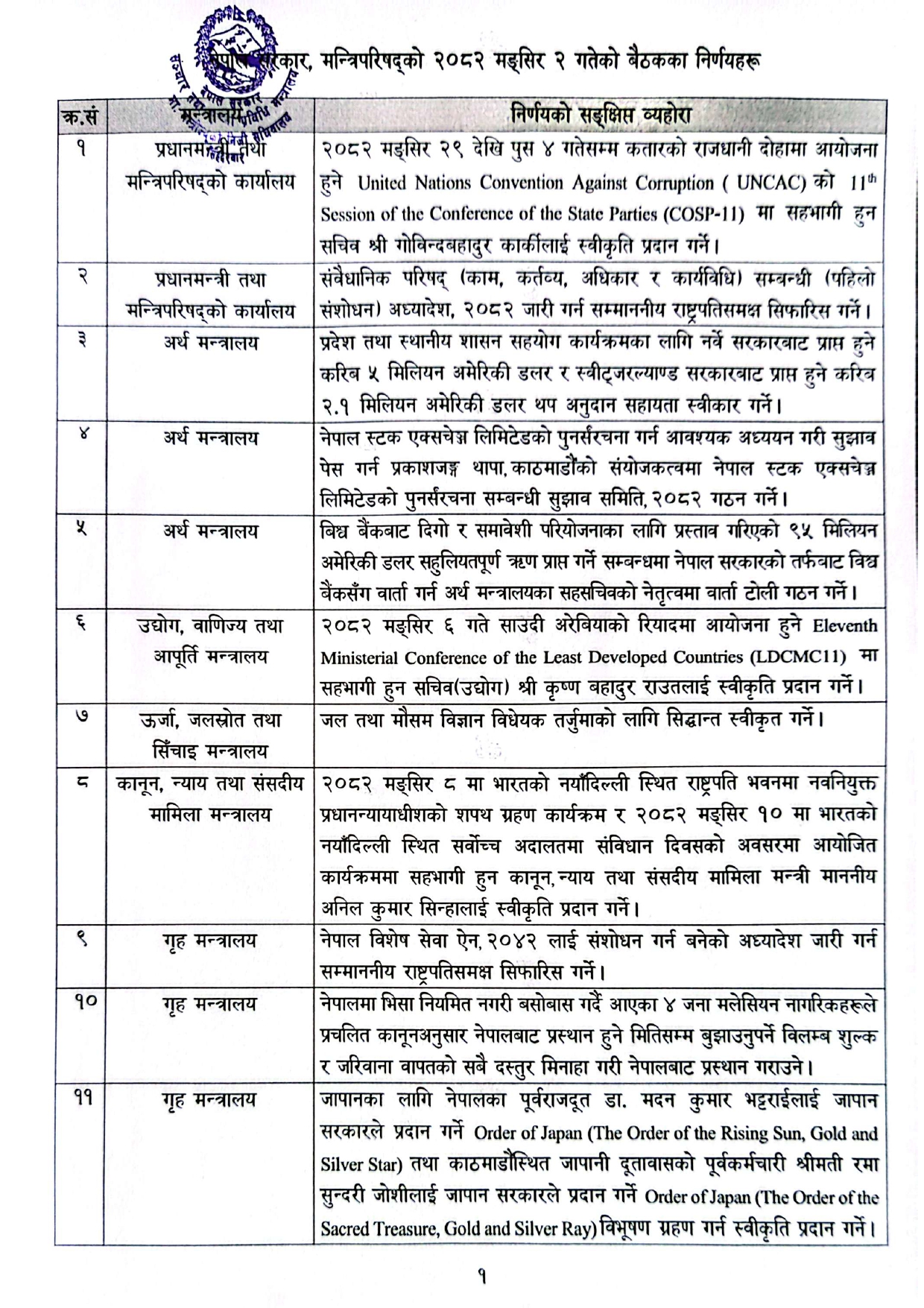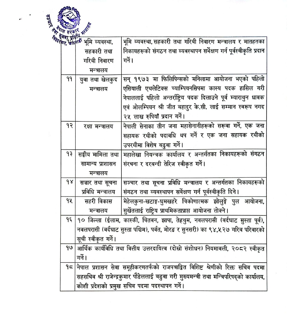 यस्ता छन् मन्त्रिपरिषद् बैठकका निर्णयहरु :